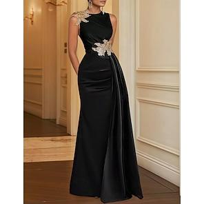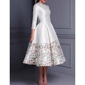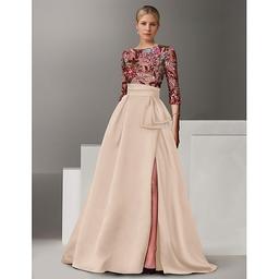 A-Line Floor Length Evening Gown Ball Gown Formal Dress Elegant Color Block High Split Half Sleeve Shirt Collar Wedding Formal Satin with Bow(s) Slit Embroidery