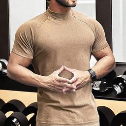 Men's Tank Top Gym Shirt Workout Shirts Athletic Shirts Turtleneck Short Sleeve Outdoor Daily Gym Sweat wicking Breathable Solid Color Black White Activewear Polyester Casual Athleisure