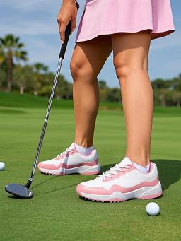 Elegant Pink Lace-Up Golf Sneakers - Slip-Resistant and Breathable, Perfect for Summer Golfing Sessions