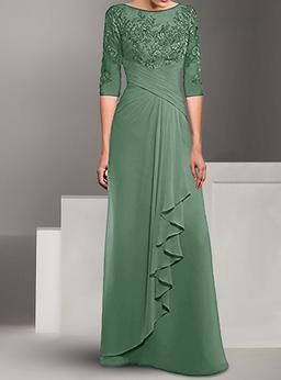 Dress Floor Length Wedding Guest Dress Formal Dresses Evening Gown 3/4 Length Sleeve Crew Neck Elegant Wedding Guest Polyester Mother of the Bride Dress with Solid Color