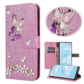 Phone Case For Samsung Galaxy S25 S24 S23 S22 S21 FE S21 Ultra Plus A55 5G A35 5G A25 A15 Wallet Case Rhinestone Magnetic Glitter Shine Butterfly Glitter Shine PU Leather
