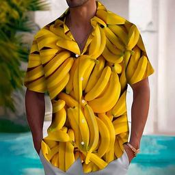 Men's Fruit Optical Illusion Banana Shirt Summer Hawaiian Shirt Button Up Shirt Short Sleeve Hawaiian Resort Vacation Holiday Beach Wear Summer Spring Turndown 3D Print Collared Shirts Light Yellow