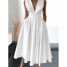 Women's White Dress Midi Dress Pocket Vacation Elegant Streetwear V Neck Sleeveless White Color