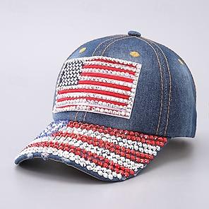 Patriotic American Flag Baseball Cap USA Sparkle Hat for Men Women Summer Sun Cap