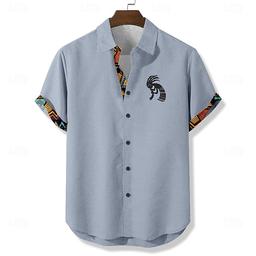 Men's Aztec Ethnic Kokopelli Shirt Summer Shirt Button Up Shirt Short Sleeve Vintage Retro Vacation Dailywear Beach Wear Summer Spring Turndown 3D Print Linen Like Shirt Blue Green Khaki