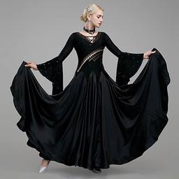 Ballroom Dance Dress Splicing Crystals / Rhinestones Women's Performance Training Long Sleeve Satin Spandex