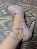 Women's Pink Glitter Platform Heels with Ankle Strap – Sparkling High Heel Pumps for Parties, Weddings, and Special Events