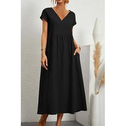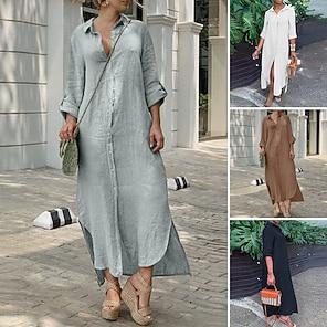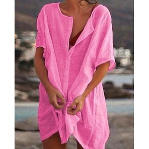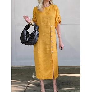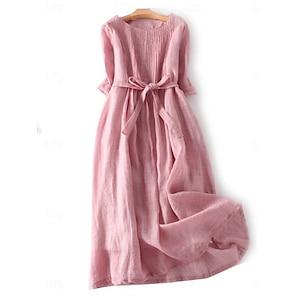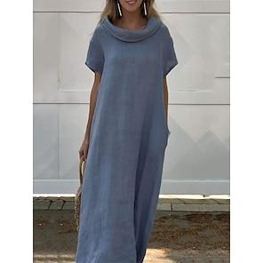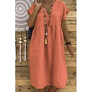 Women's Midi Dress Linen-Inspired Dresses Cotton Linen Dress Basic Classic Modern Vacation Daily Holiday Regular Fit Plain Short Sleeve V Neck Black Light Green Pink Army Green Summer