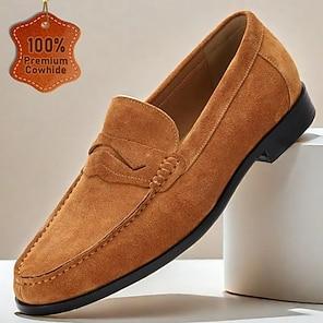 Men's Yellow Leather Slip-On Loafers - Comfortable Casual Driving Shoes