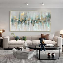 Gold Foil Teal Green painting hand painted 3D Texture Abstract Painting On Canvas for Livingroom Bedroom Oversize Large Luxury Gold painting Wall Art New Home Art Decor