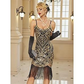 Retro Vintage Roaring 20s 1920s Ankle Length Outfits Cocktail Dress Jumpsuit Sleeveless The Great Gatsby Wedding Guest Sequins Tassel Fringe V Neck Fancy Dress Women's Christmas Carnival Masquerade