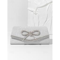 Blue Glitter Clutch Purse with Rhinestone Bow Accent, Elegant Evening Bag for Women, Perfect for Weddings, Parties, and Formal Events Silver Black Blue
