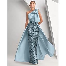A-Line Floor Length Evening Gown Ball Gown with Overskirt Formal Dress Elegant Vintage Glittering Sleeveless One Shoulder Wedding Formal Satin with Bow(s) Slit Embroidery
