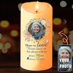 Personalized Memorial LED Candle Custom Photo Sympathy Gifts For Loss Of Loved Ones, Elegant Remembrance Light for Home Bedroom Decor, Tribute to Passed Loved Ones