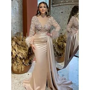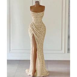 Sheath / Column Floor Length Prom Dresses Elegant Glittering Sparkle Sleeveless Strapless Prom Formal Sequined with Glitter Sequin
