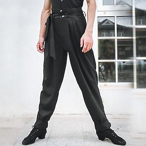 Latin Dance Pants Ruching Pure Color Men's Performance Natural Spandex Polyester