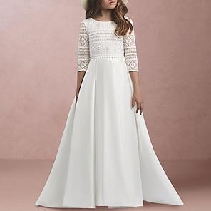 A-Line Ankle Length Flower Girl Dress First Communion Girls Cute Prom Dress Satin with Bow(s) Elegant Fit 3-16 Years dress to impress