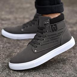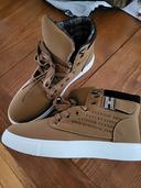 Men's Tan High-Top Sneakers with Lace-Up Design and Buckle Detail for Casual and Streetwear
