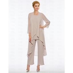 Jumpsuit Pantsuit Floor Length Sleeveless Bateau Neck Elegant Plus Size Wedding Guest Chiffon Mother of the Bride Dress Wrap Included with Solid Color