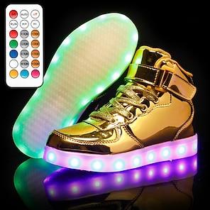 White Men's LED Light-Up Sneakers with Lace-Up Closure for Trendy and Nighttime Wear