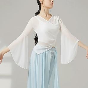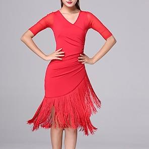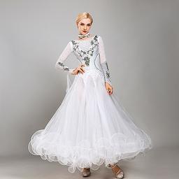 Ballroom Dance Dress Embroidery Appliques Crystals / Rhinestones Women's Performance Training Long Sleeve Tulle Ice Silk
