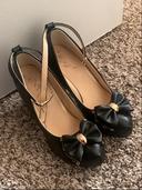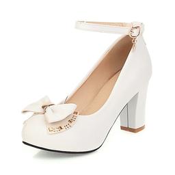 Girls' White Block Heel Dress Shoes – Round Toe Pumps with Bow & Ankle Strap for Wedding, Party & Formal Occasions