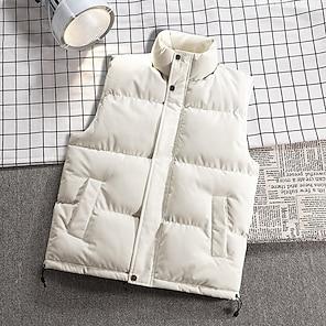Women's Hiking Vest Winter Coat Puffer Vest Sleeveless Vest Outdoor Thermal Warm Fleece Lining Comfortable Breathable Winter Zipper Pocket Polyester Black Khaki Dark Blue Fishing Camping / Hiking