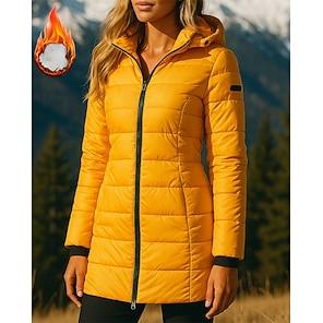 Women's Hiking Jacket Thermal Jacket Mid-length Puffer Jacket Outdoor Thermal Hiking Outfits Hiking Clothes Winter Autumn / Fall Top Camping / Hiking / Caving Running Solid Color Black White Yellow