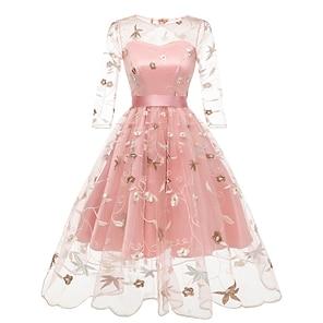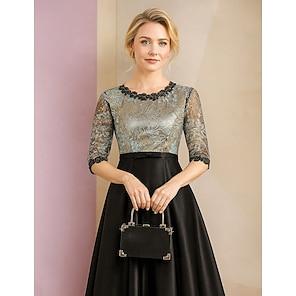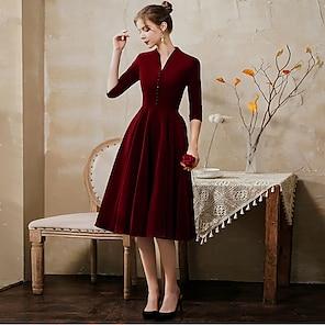 A-Line Knee Length Prom Dresses Elegant Vintage Short Sleeve V Neck Wedding Guest Graduation Lace with Lace Insert Pattern / Print