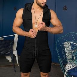 Mens Hooded Sleeveless Onesie Stretchy Jumpsuit Breathable Tight Onesies with Zipper