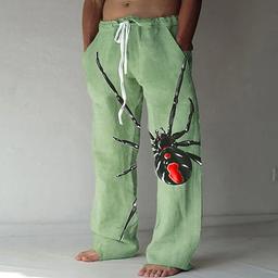 Men's Trousers Summer Pants Beach Pants Straight Elastic Drawstring Design Front Pocket Straight Leg Spider Graphic Prints Comfort Soft Casual Daily Fashion Big and Tall White Green