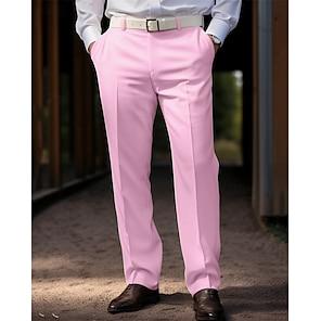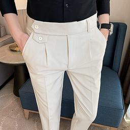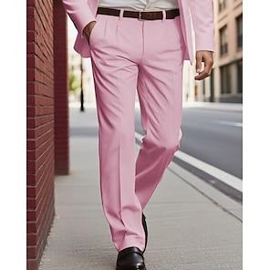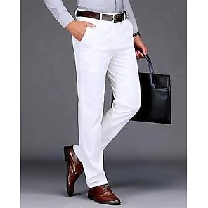 Men's Graduation Dress Pants Trousers Pleated Pants Cuffed Dress Pants Pocket Expandable Waist Plain Comfort Breathable Wedding Business Casual Fashion Simple Black Green Micro-elastic