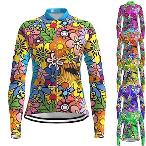 Women's Cycling Jersey Geometric Geometry Funny Long Sleeve Bike Jersey Top with 3 Rear Pockets Mountain Bike MTB Road Bike Cycling Quick Dry Reflective Strips Back Pocket Moisture Wicking Sports