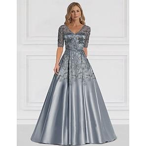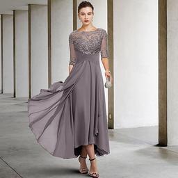 A-Line Asymmetrical Ankle Length Party Dress Cocktail Dress Wedding Guest Dress Half Sleeve V Neck Elegant Plus Size High Low Wedding Guest Chiffon Lace Mother of the Bride Dress with Beading