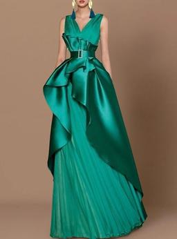 A-Line Evening Gown Elegant Dress Formal Wedding Guest Floor Length Sleeveless V Neck Chiffon with Belt Ruffles 2025