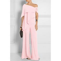 Jumpsuits Floor Length Short Sleeve Off Shoulder Elegant Formal Wedding Guest Chiffon Mother of the Bride Dress with Ruffles