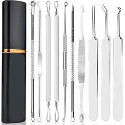 Blackhead Remover Pimple Popping Tool Kit, Boxoyx 10Pcs Professional Pimple Comedone Extractor Popper Tool Acne Removal Kit-Treatment for Pimple, Blackhead, Zit Removing, Forehead,Facial&Nose (Silver)