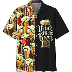 Men's Graphic Prints Beer Shirt Summer Hawaiian Shirt Aloha Shirt Short Sleeve Tropical Fashion Hawaiian Casual Hawaiian Holiday Summer Spring Turndown Print Button-Down Light Yellow Black Yellow