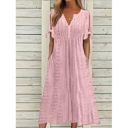 Women's Midi Dress A Line Dress Summer Dress Boho Dress Pleated Dress Elegant Fashion Modern Outdoor Vacation Daily Loose Fit Plain Short Sleeve V Neck White Pink Blue Green Summer Spring