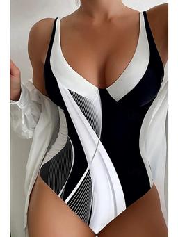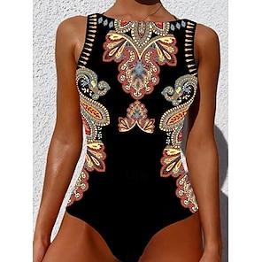 Women's Normal Swimwear One Piece Swimsuit Tummy Control Printing Beach Wear Summer Geometic Sleeveless Bathing Suits
