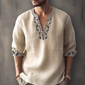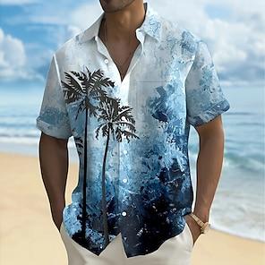 Men's Shirt Linen Shirt Beach Shirt Coconut Tree Outdoor Street White Pink Blue Orange Long Sleeve Stand Collar Summer Spring Clothing Apparel Print