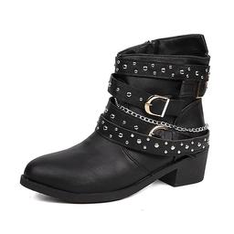 Women's Black Studded Ankle Boots with Multiple Buckle Straps - Edgy Design for Casual and Night Out Looks