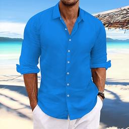 Men's Linen Shirt Summer Shirt Beach Wear Casual Shirt Button Up Shirt Plain Vacation Casual Light Yellow White Pink Dark Navy Long Sleeve Spring & Summer Clothing Apparel