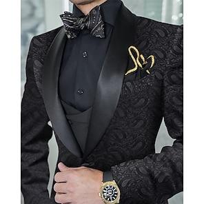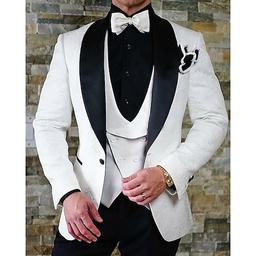Men's Wedding Prom Suits Shawl Collar White Jacquard Floral Tailored Fit 3 Piece Single Breasted One-button