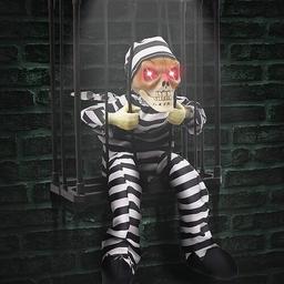 Halloween Decoration Screaming Animated Halloween Decor Prop with Motion Sensor Scary Skull Cage Prisoner Haunted House Decor Spooky Hanging Ghost Light Up Eyes Decorations Set
