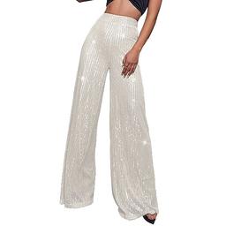 Women's Wide Leg Pants Trousers Sparkly Pants Elegant Fashion Sparkle Full Length High Waist Plain Sequins Comfy Micro-elastic Party Street Party & Evening claret M beige Pink gold Black Summer Spring