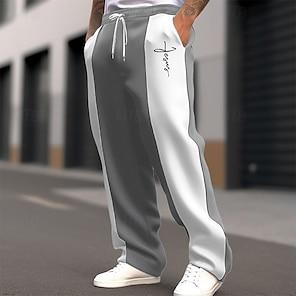 Men's Sweatpants Wide Leg Sweatpants Trousers Casual Pants Straight Leg Sweatpants Drawstring Pocket Elastic Waist Plaid Comfort Soft Christmas Daily Holiday Fashion Casual Black White