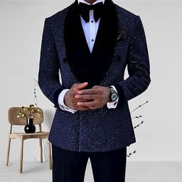 Men's Party Mardi Gras Suits Shawl Collar Silver Black Solid Colored Tailored Fit 2 Piece Single Breasted One-button