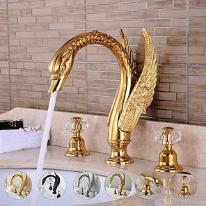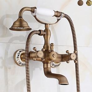 Retro Style Utility Sink Laundry Faucet, Wall Mount Long Spout Two Handles Two Holes Wash Basin Tap with Hot and Cold Water Hoses, Laundry Tub Pot Filler Commercial Faucet in Antique Brass