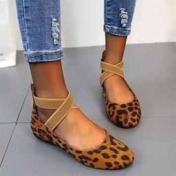 Women's Flats Plus Size Comfort Shoes Daily Leopard Flat Heel Round Toe Classic Comfort Minimalism Faux Suede Elastic Band Leopard Black Brown
